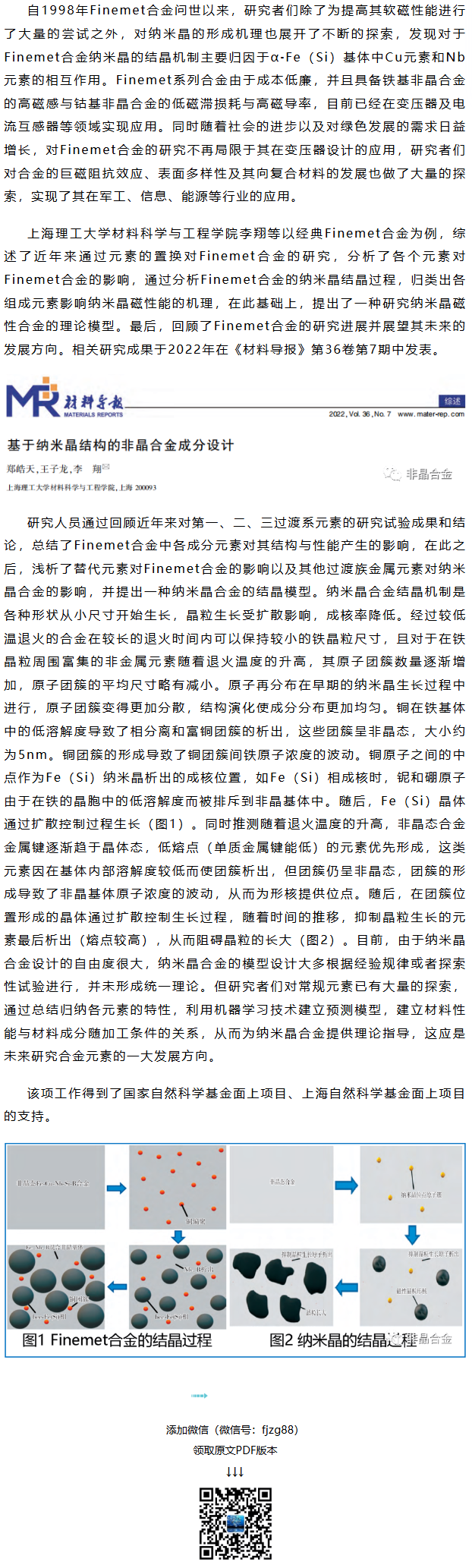 《材料导报》李翔等工作:基于纳米晶结构的非晶合金成分设计