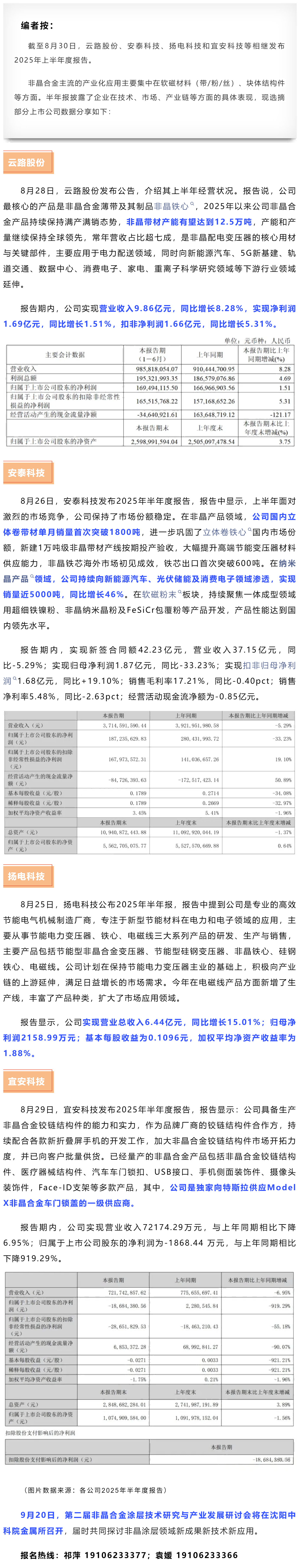 非晶上市企业“期中答卷”:磁性材料与应用内生动力足业绩继续向好