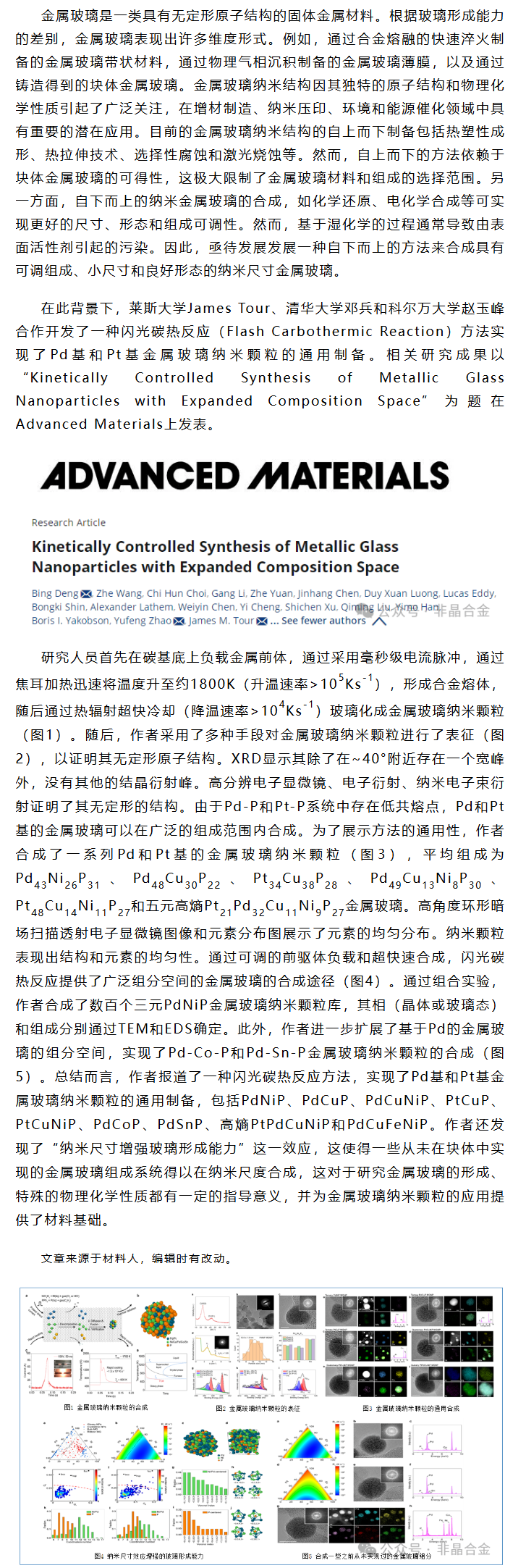 《Adv. Mater.》邓兵、赵玉峰等工作:动力学控制合成金属玻璃纳米颗粒