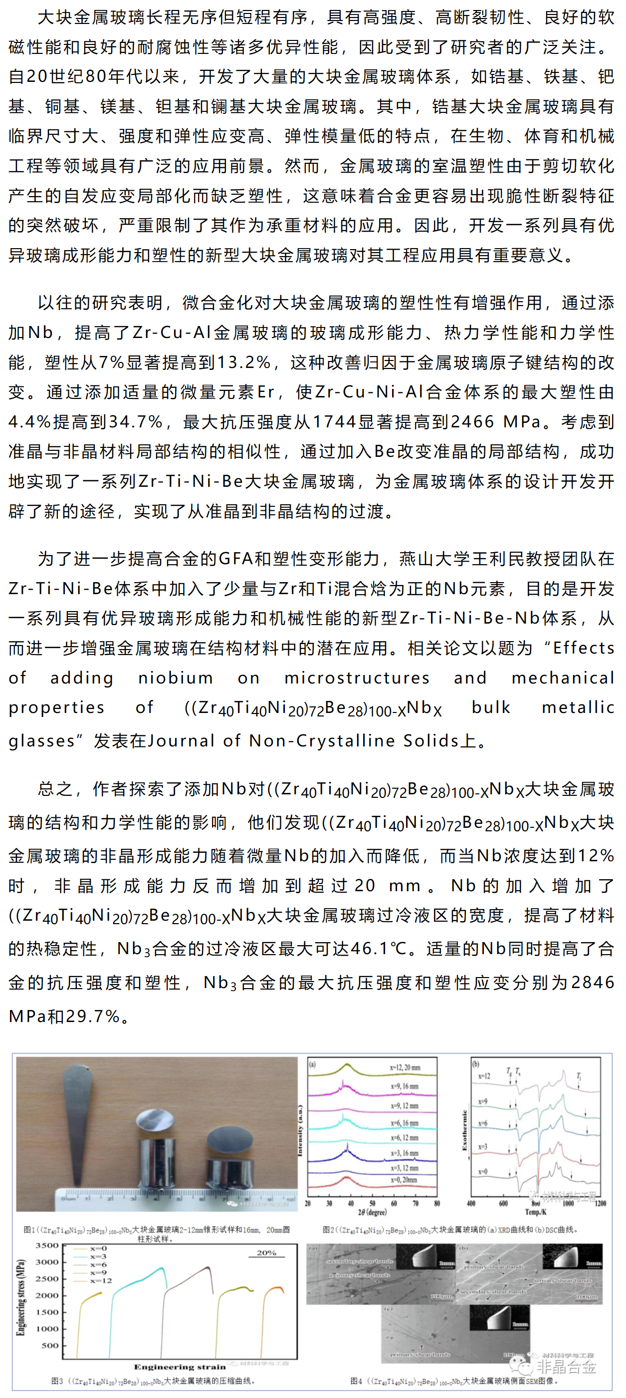 《JNCS》王利民等工作:实现最大抗压强度2846MPa、塑性应变29.7%大块金属玻璃