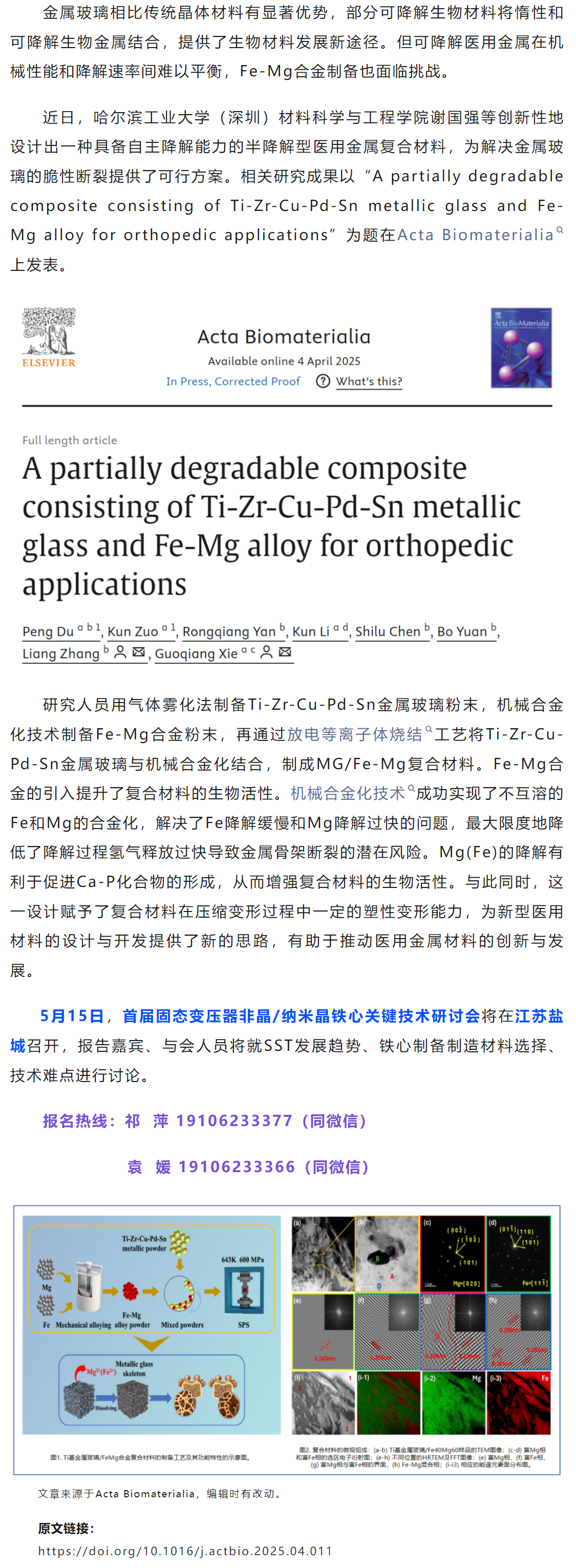 Acta Biomaterialia哈工大(深圳)谢国强等工作:用于骨科医用的半降解型Ti基金属玻璃复合材料的设计与性能研究