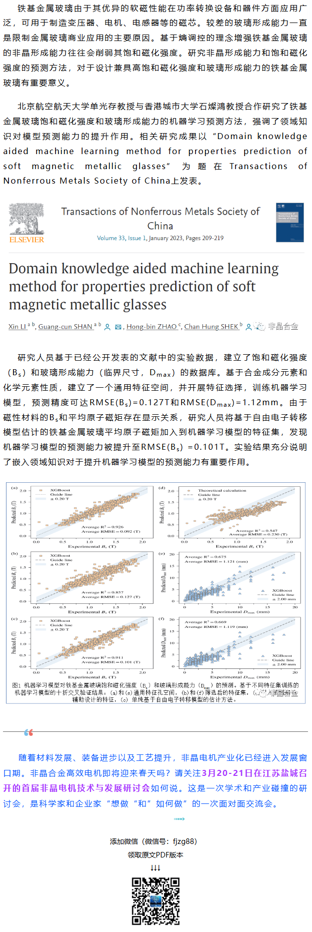 《TNMSC》单光存, 石燦鴻等工作:基于领域知识辅助的机器学习方法对软磁金属玻璃性能的预测
