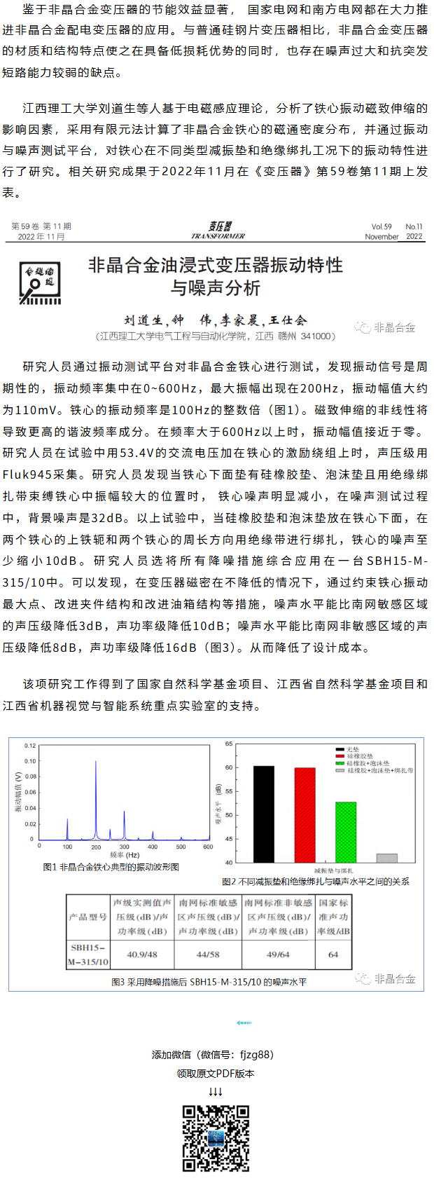 《变压器》刘道生等工作:非晶合金油浸式变压器振动特性与噪声分析