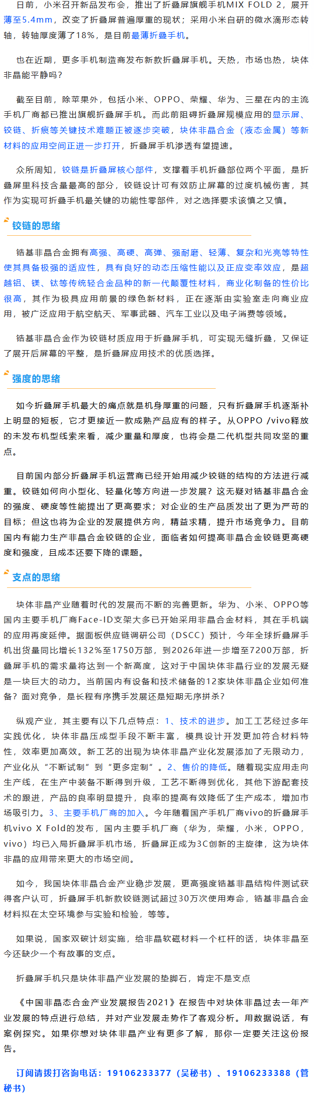 今秋有点热!折叠屏手机让块体非晶产业“思绪”再翻飞