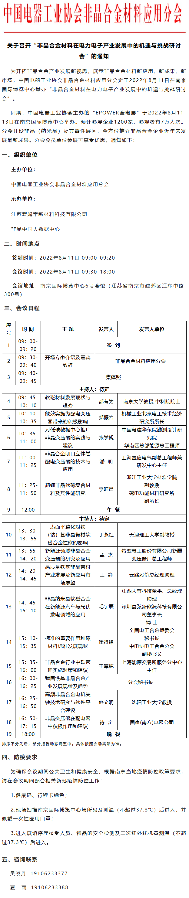 会议通知|非晶合金材料在电力电子产业发展中的机遇与挑战研讨会
