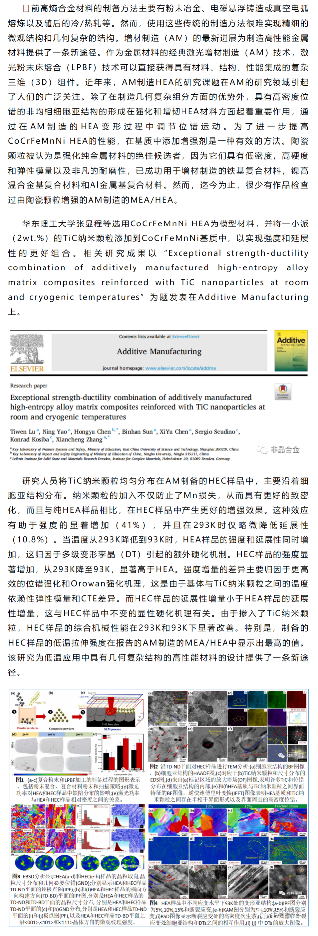 ADDIT MANUF 张显程等工作:增材制造优异的低温高强塑性高熵合金基复合材料
