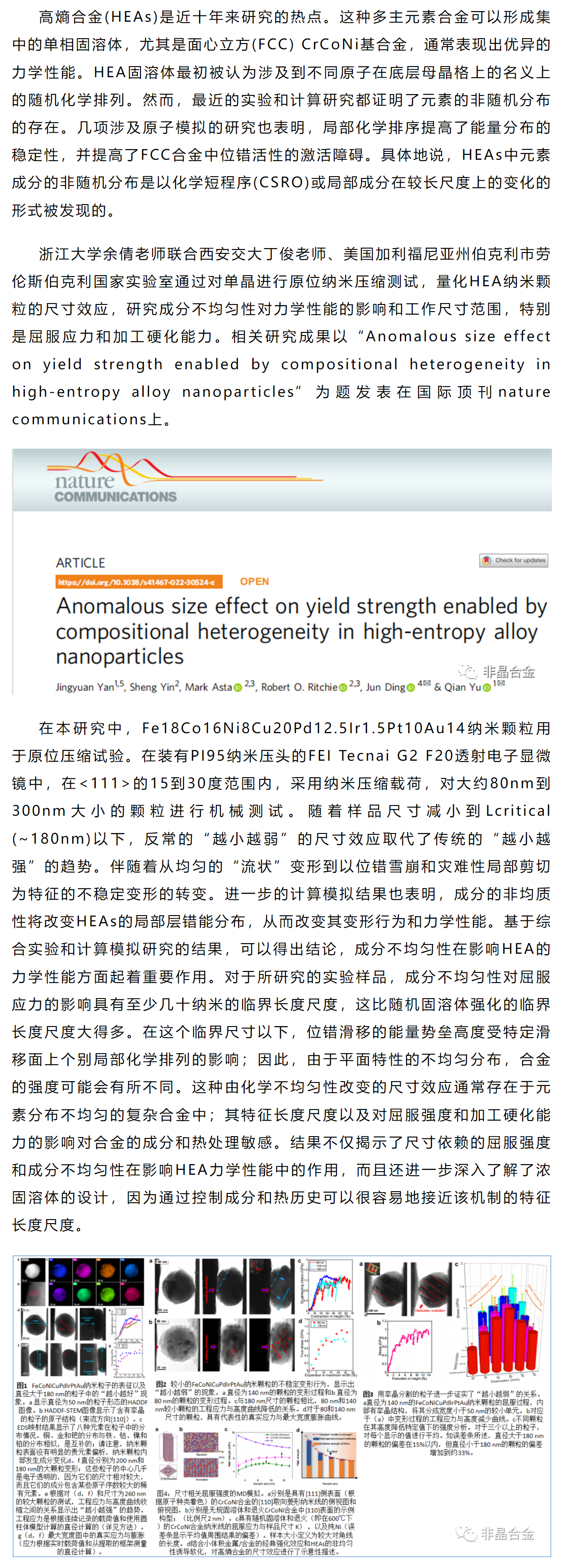 Nat. Commun.余倩等工作:成分对高熵合金屈服强度的反常尺寸效应