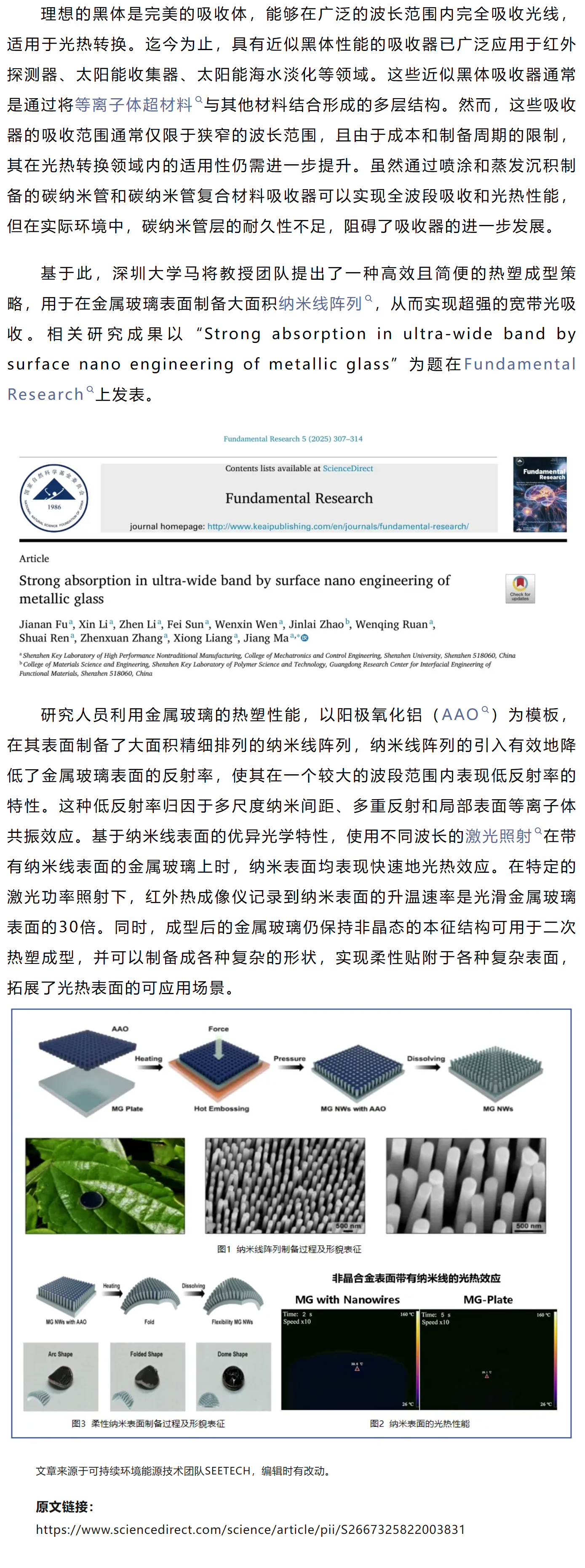 FR|马将等工作:构建纳米“森林”助力金属表面实现高效光热转换