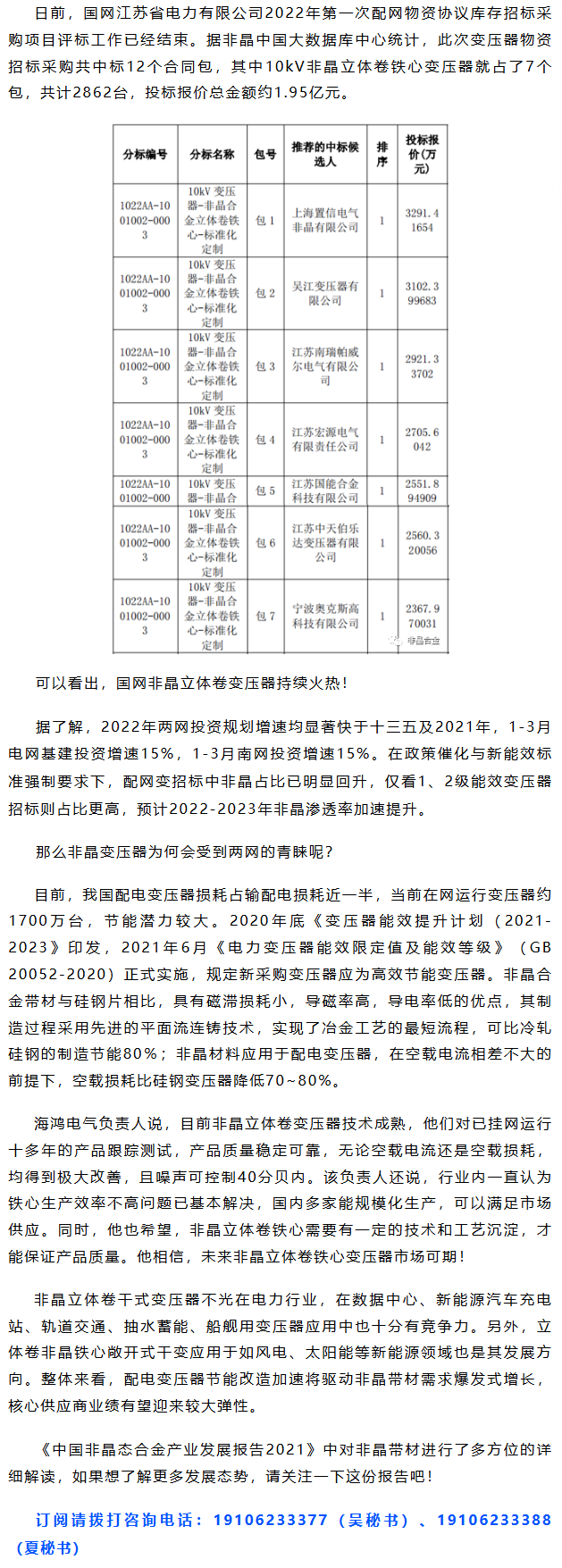 国网江苏电力今年首次招标,非晶立体卷变压器继续成为“主旋律”