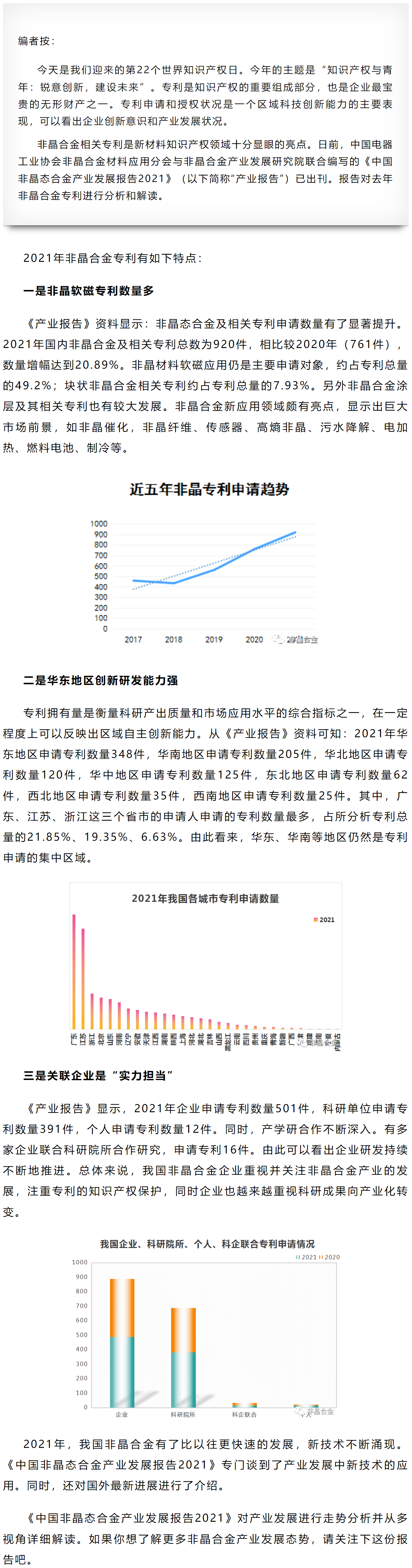 知识产权日 | 从2021年专利数据看非晶合金产业发展和创新