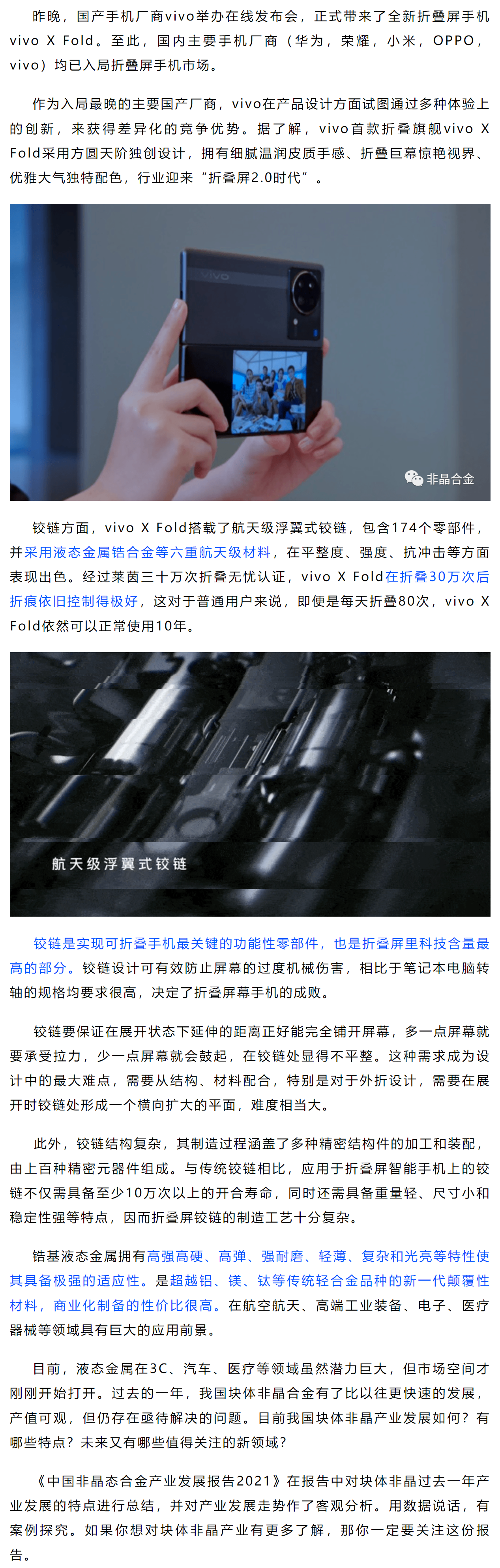 又一折叠屏手机上市 锆基非晶合金铰链让你开合皆惊艳