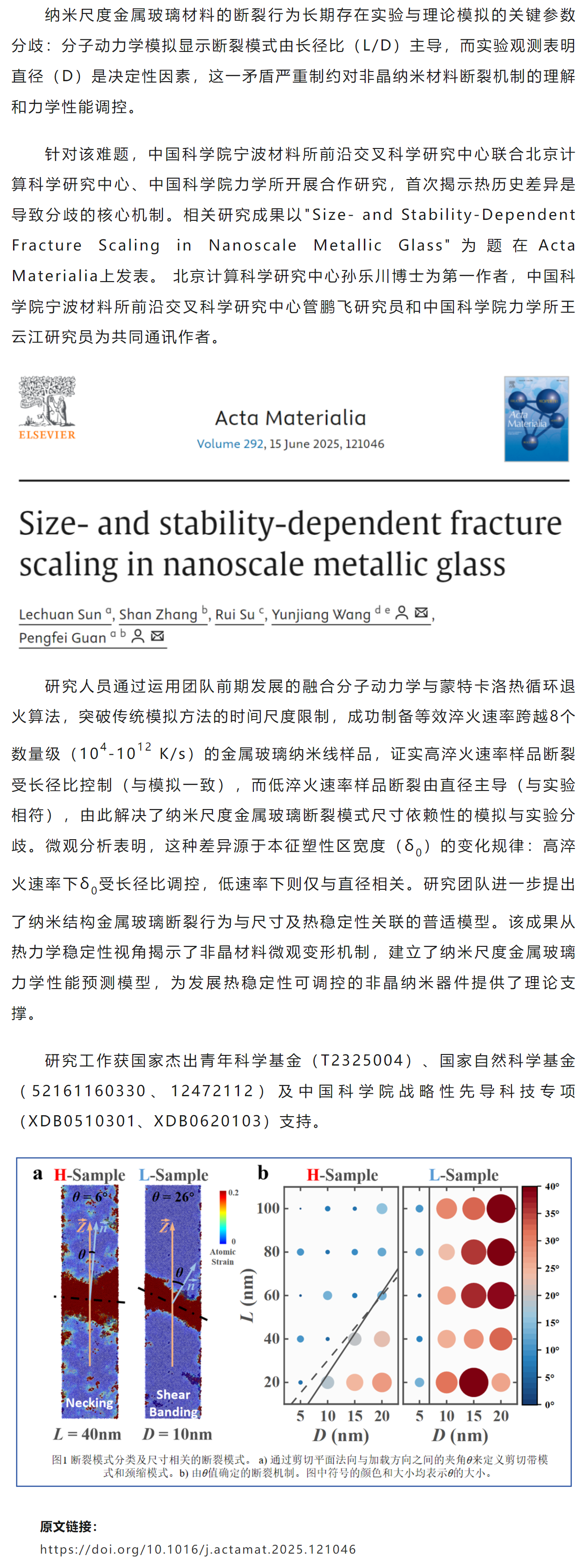 Acta Materialia中国科学院宁波材料所管鹏飞等工作:金属玻璃纳米线断裂模式尺寸效应的热历史调控机制