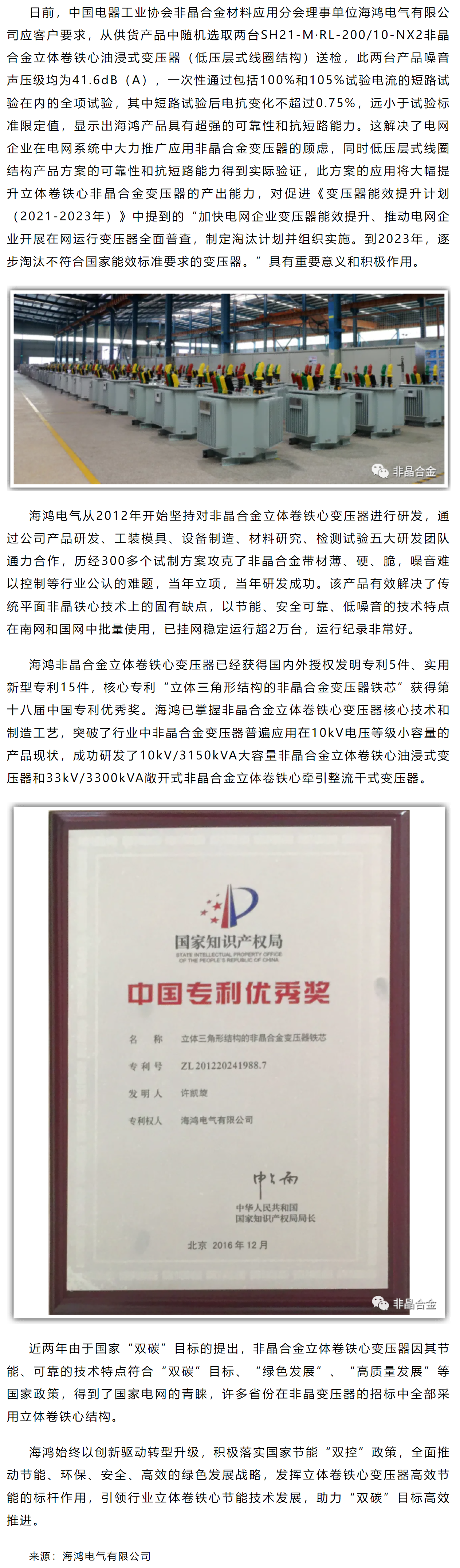 海鸿电气:坚持创新努力引领行业立体卷铁心节能技术发展