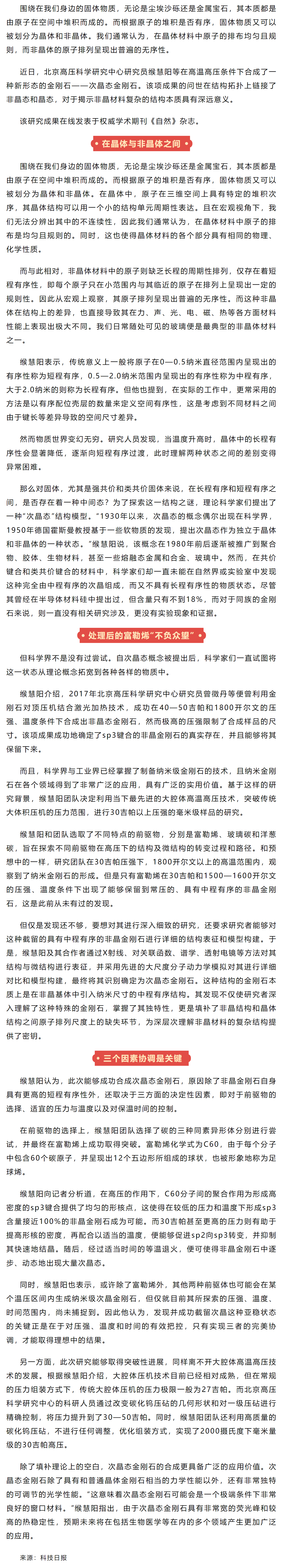 不是晶体也不是非晶体 次晶态金刚石这样“诞生”