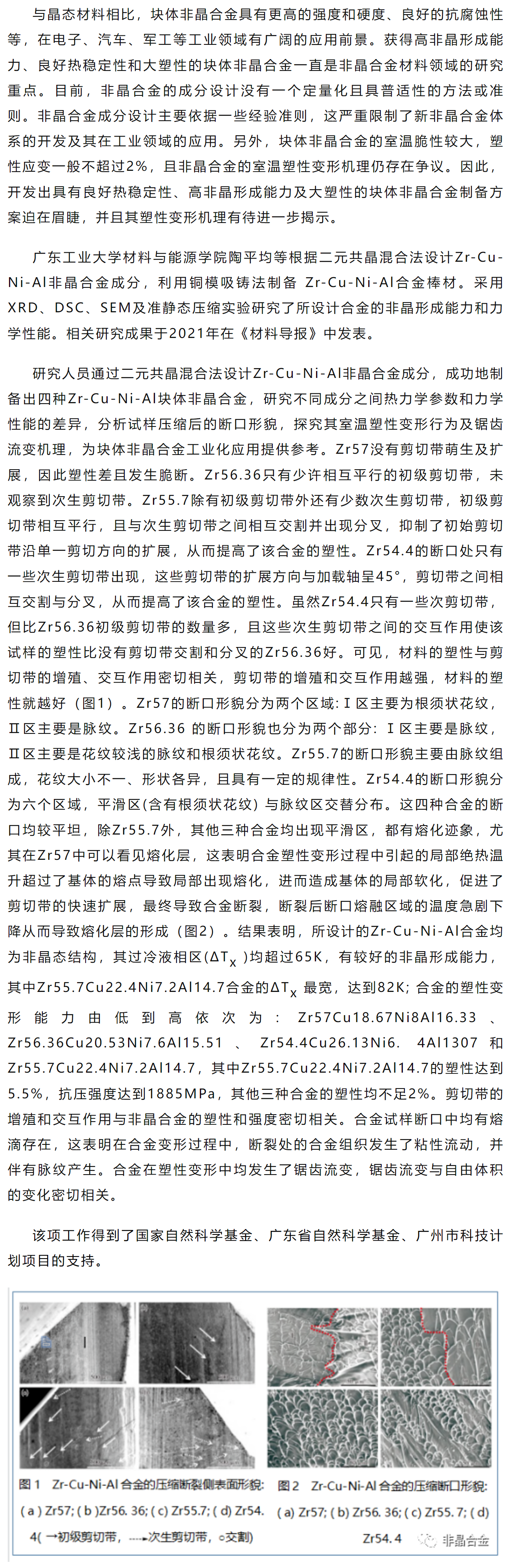 《材料导报》陶平均等工作:Zr基块体非晶合金的成分设计及其性能研究
