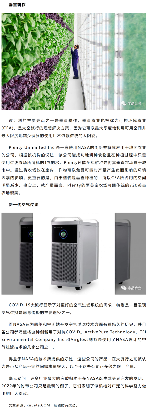 NASA公布2022年太空技术衍生项目 非晶合金齿轮无需润滑油