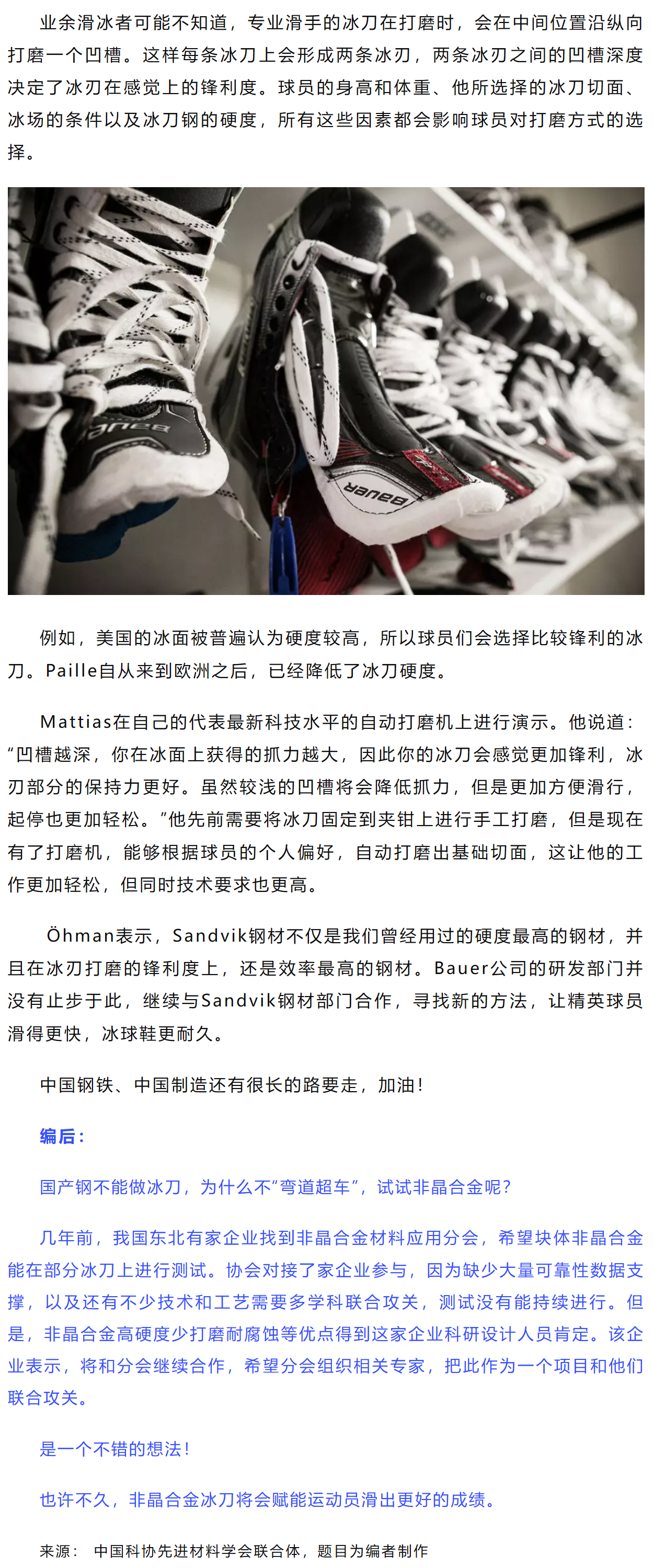 冬奥会冰刀用的什么钢?非晶合金你怎么看?