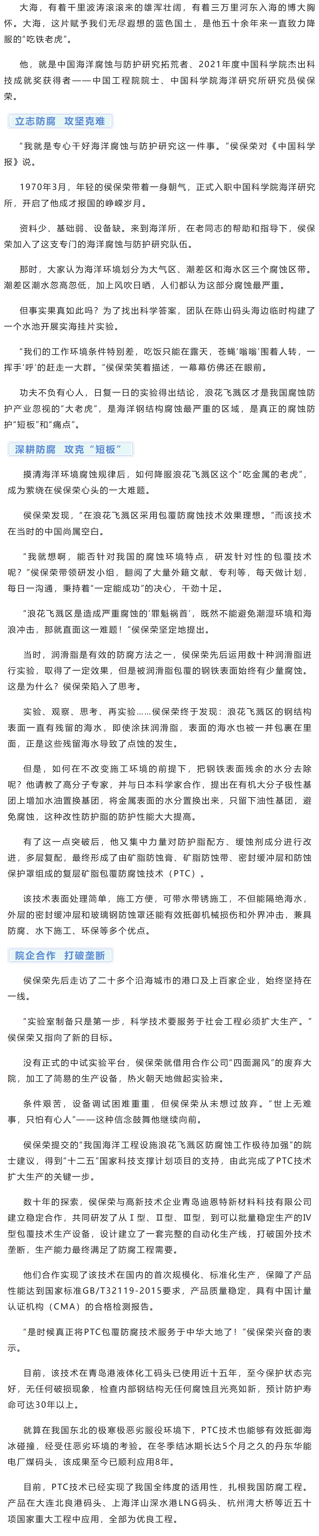 侯保荣院士:愿做一辈子海洋“防腐卫士”