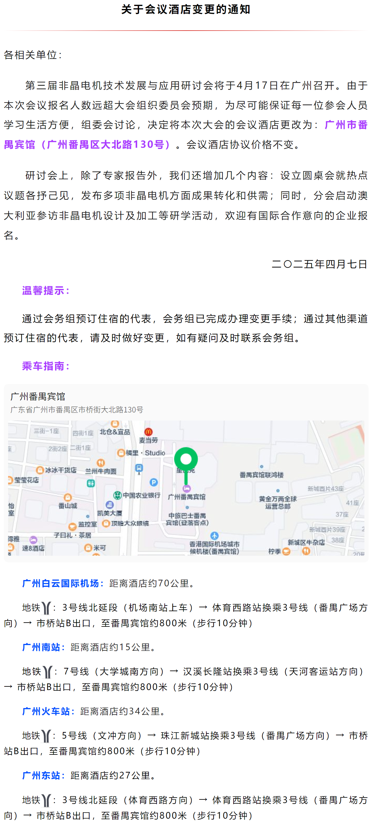 报名参会的人多!广州非晶电机会酒店调整到番禺宾馆啦