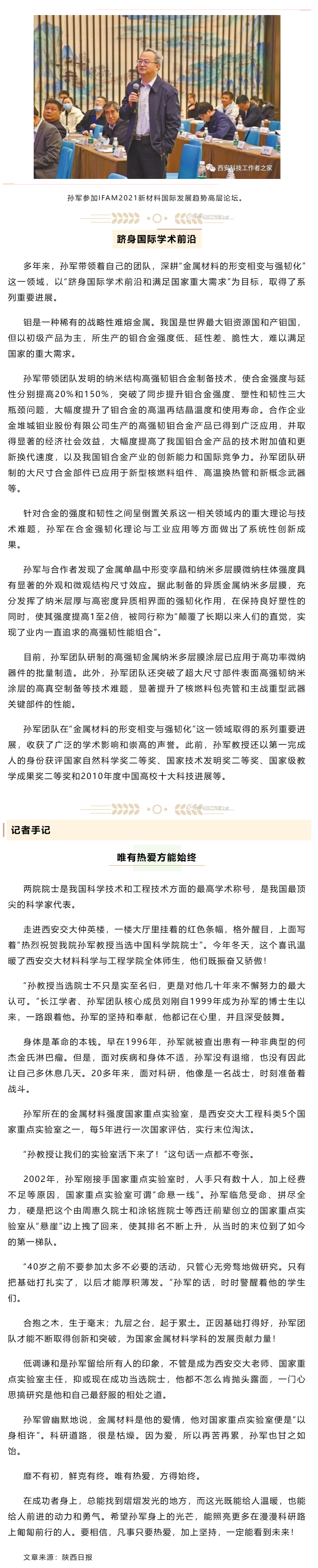 孙军:颠覆固有认知 让金属材料更强韧