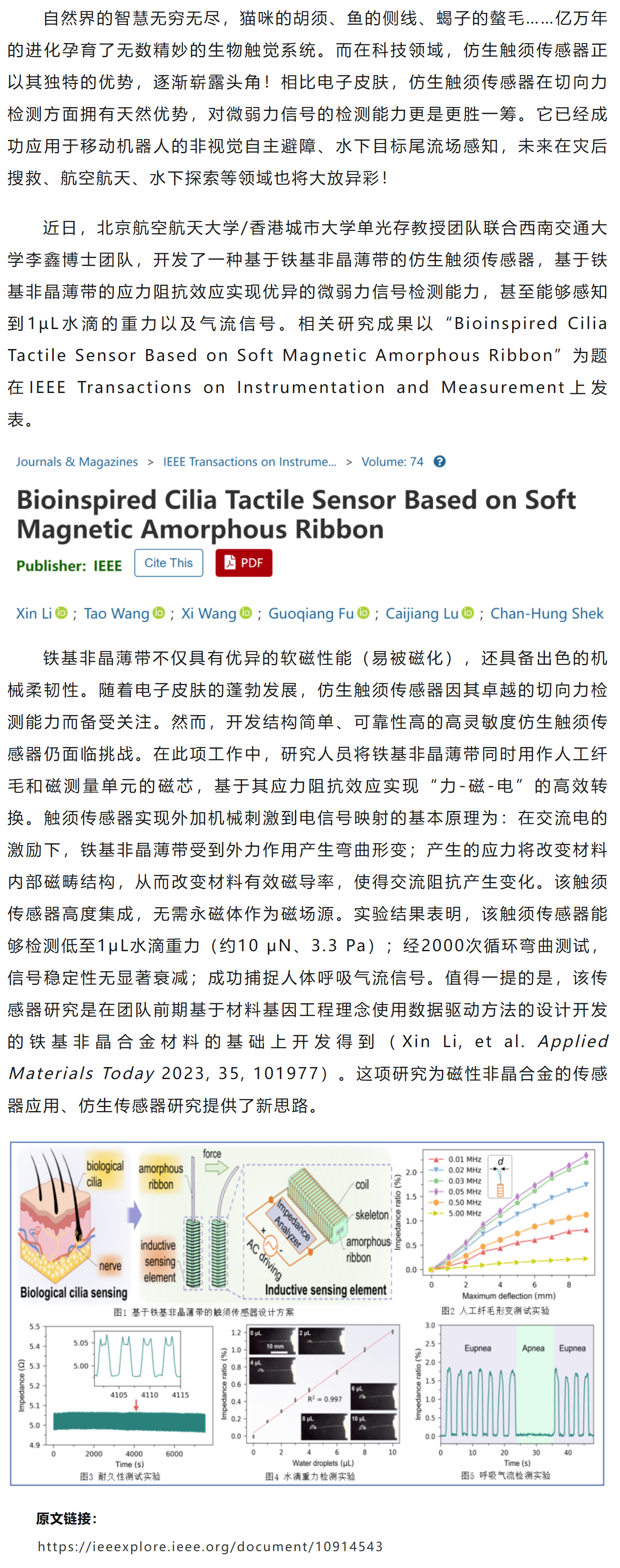 IEEE TIM北航单光存等工作:基于铁基非晶薄带的仿生触须传感器