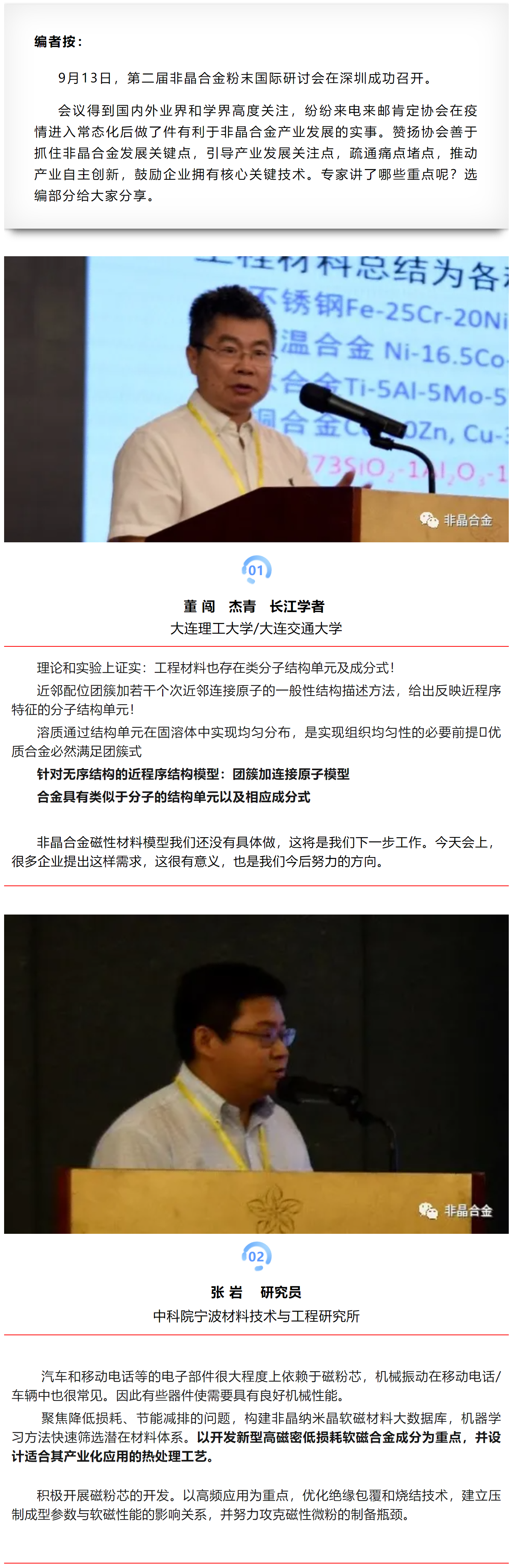 敲黑板,深圳研讨会专家讲了哪些重点? | 来自非晶粉末研讨会上的报道(二)