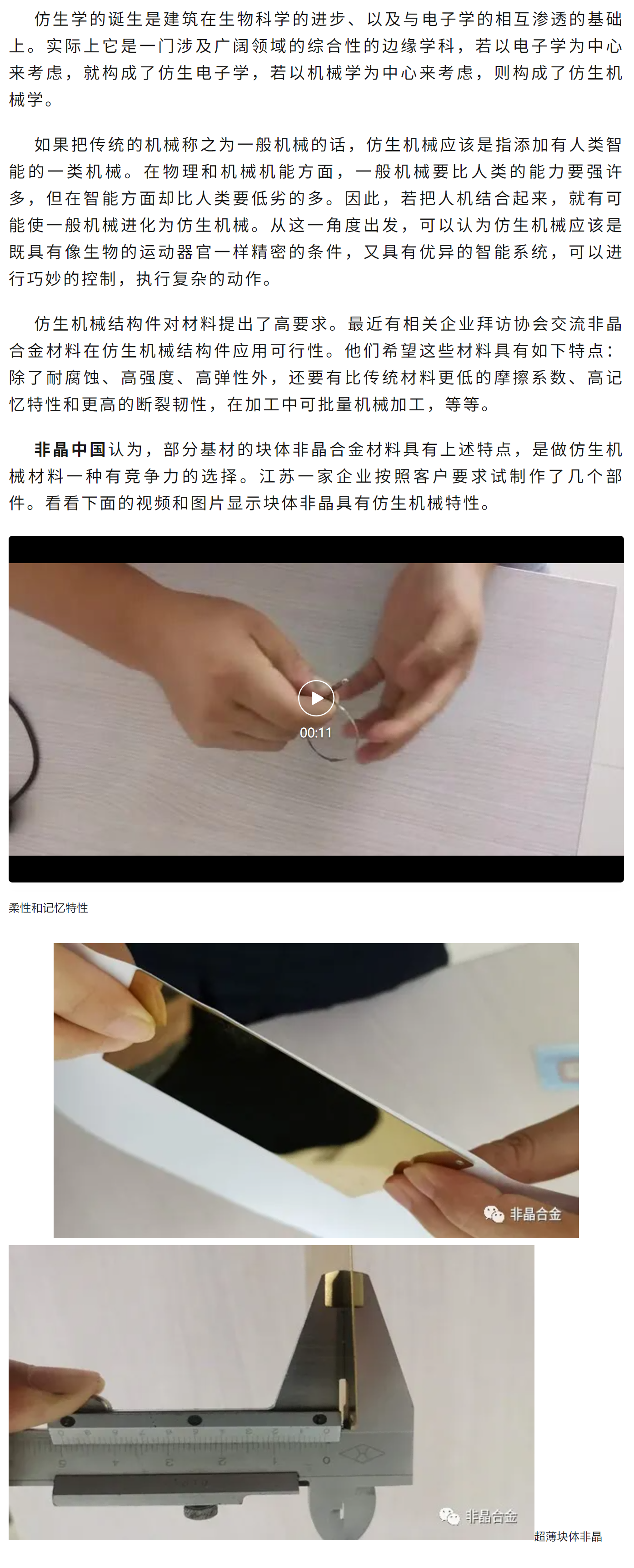 非晶合金材料在仿生领域中能否“展翅高翔”?看看德国仿生机械的结构件