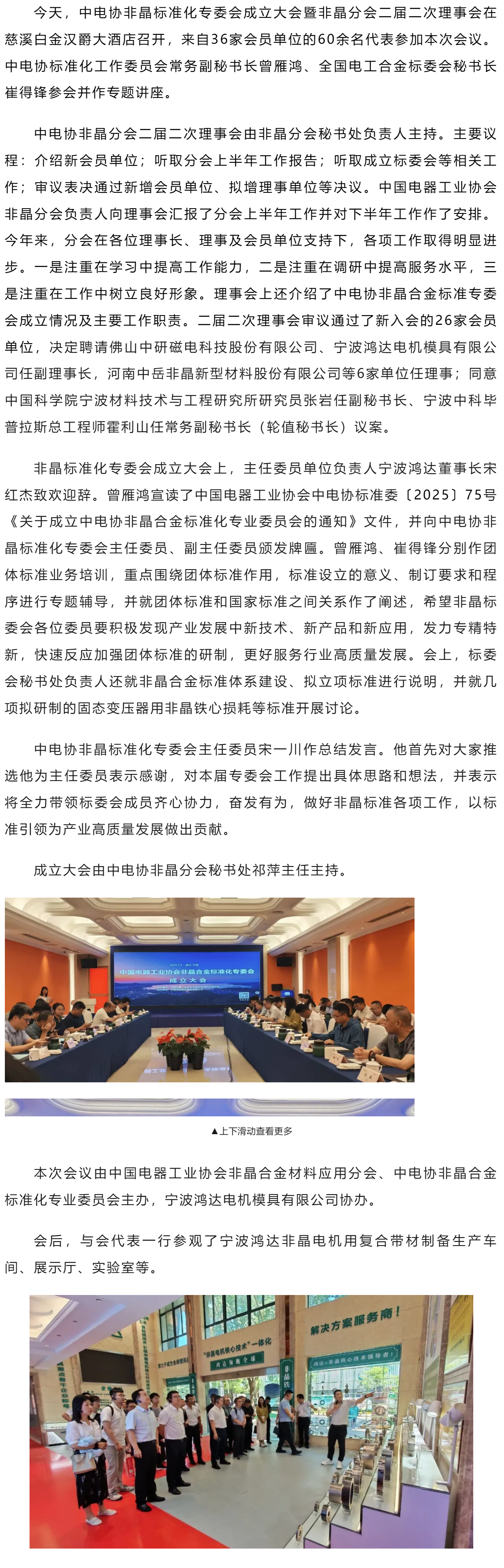 中电协非晶标准化专委会成立大会暨非晶分会二届二次理事会在慈溪召开