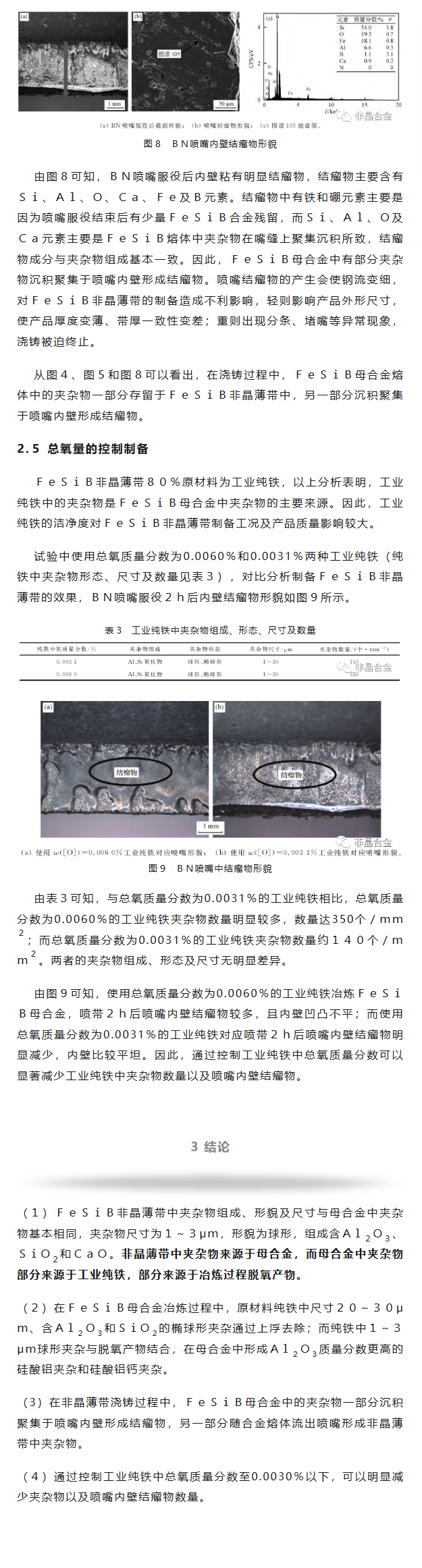 FeSiB非晶薄带中夹杂物的来源及形成机理