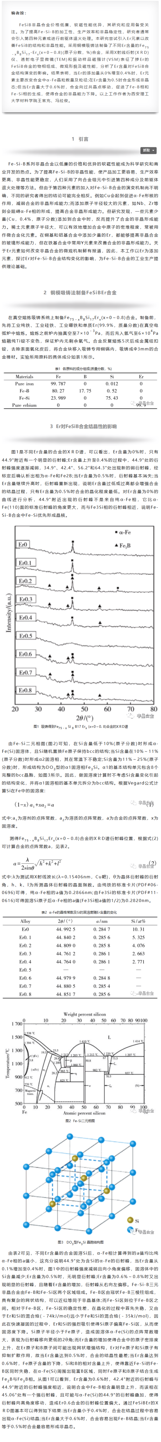 Er含量对FeSiB合金结构演变的影响