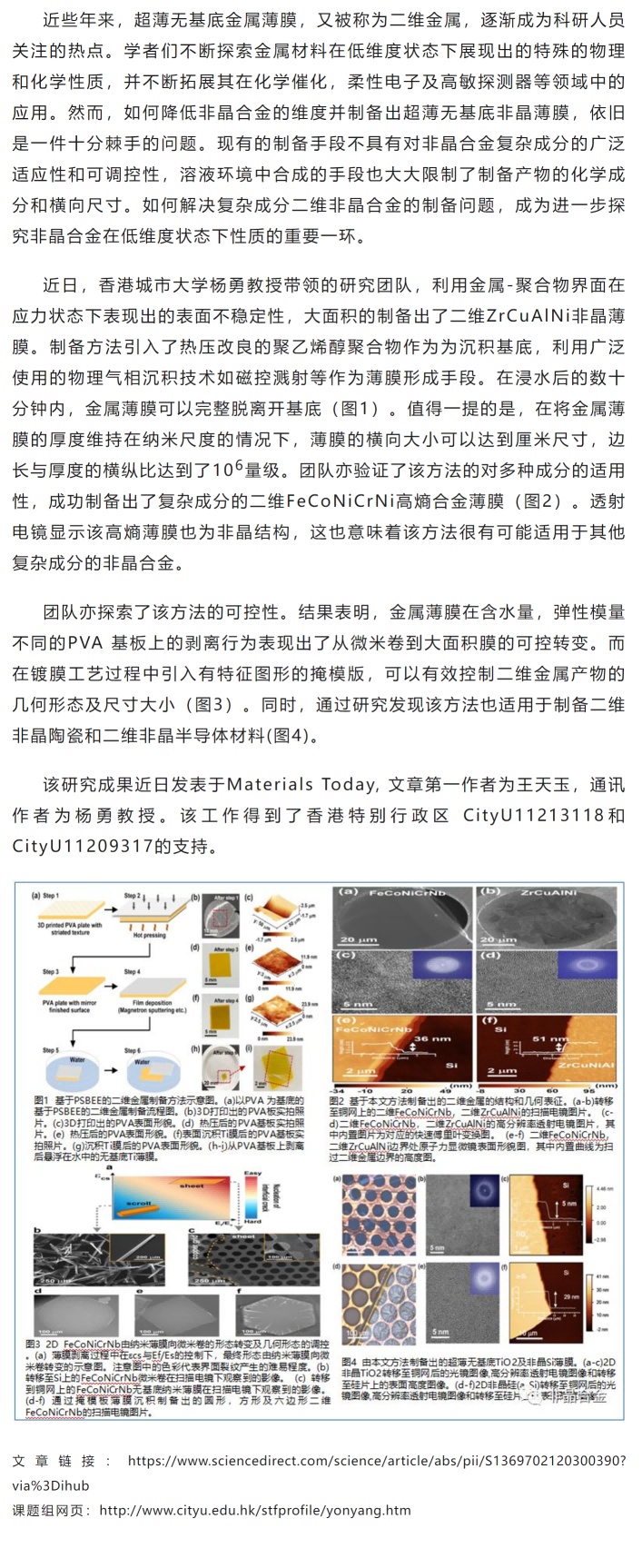 《Materials Today》杨勇工作:大面积制备二维非晶合金的力学途径
