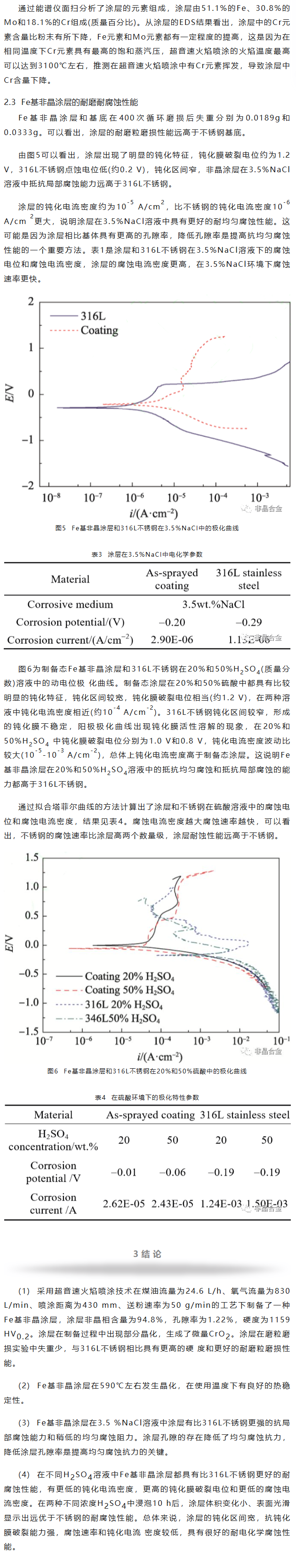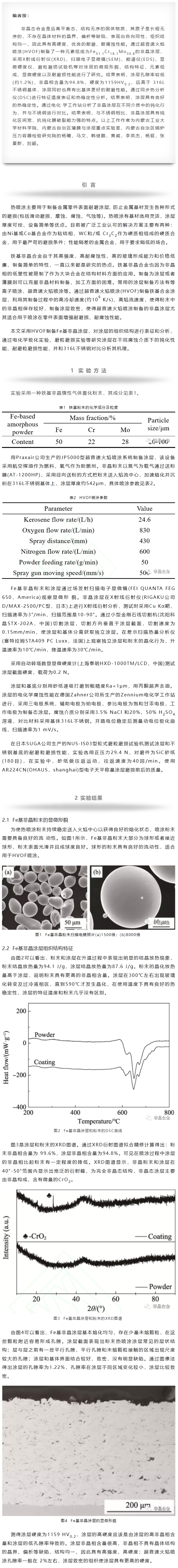 HVOF制备铁基非晶涂层及其耐磨耐腐蚀性能