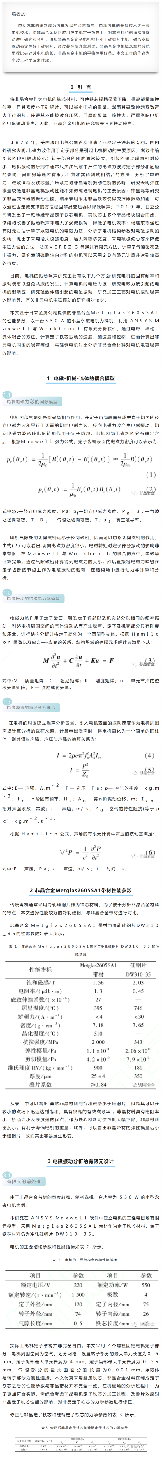 从电磁振动噪声计算与分析看,非晶电机实际应用需解决的问题