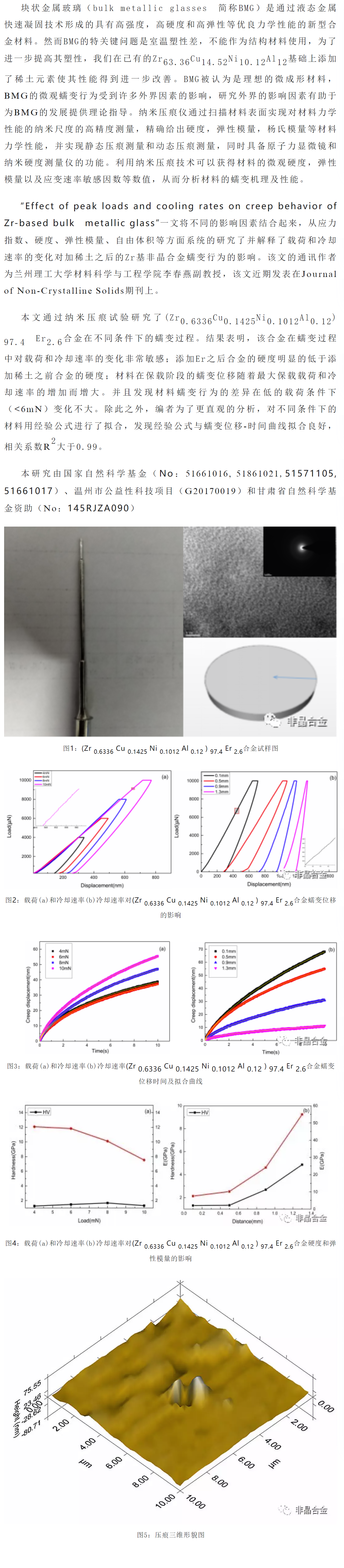 峰值载荷和冷却速率的变化对锆基非晶合金蠕变行为的影响