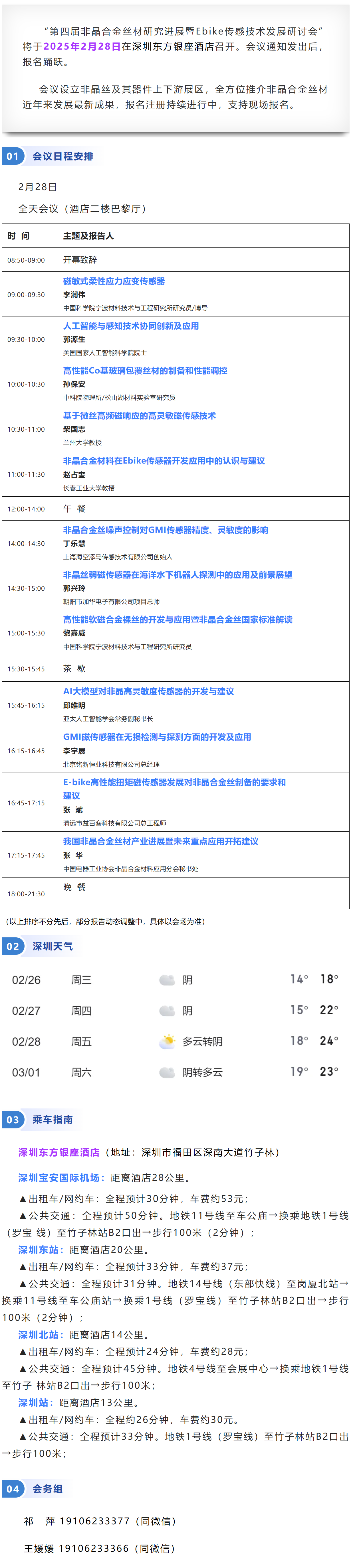 会议日程公布 | 第四届非晶合金丝材研究进展暨Ebike传感技术发展研讨会