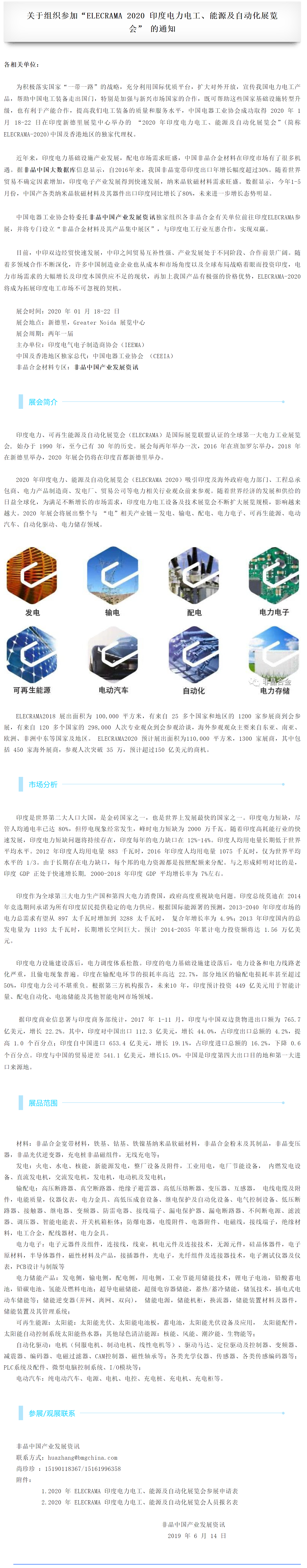 关于组织参加“ELECRAMA 2020 印度电力电工、能源及自动化展览会” 的通知