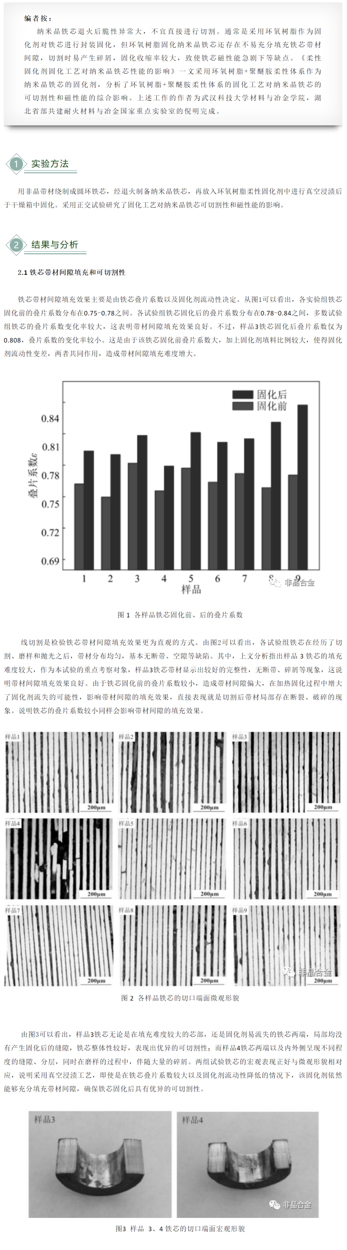 这种方法固化退过火的纳米晶铁芯,好切割且对磁性能影响小