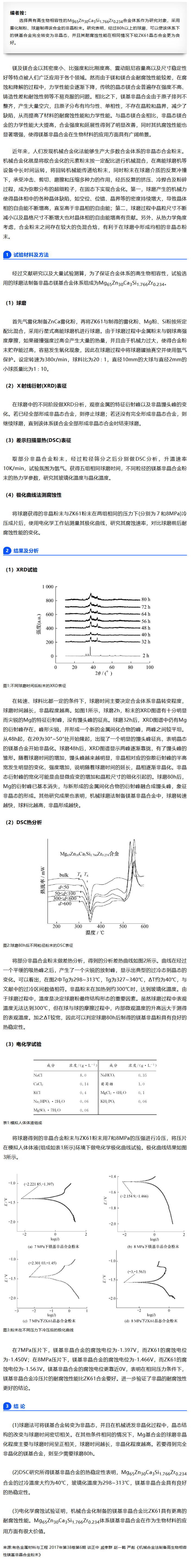 同济大学:机械合金法制备高生物相容性镁基非晶合金粉末