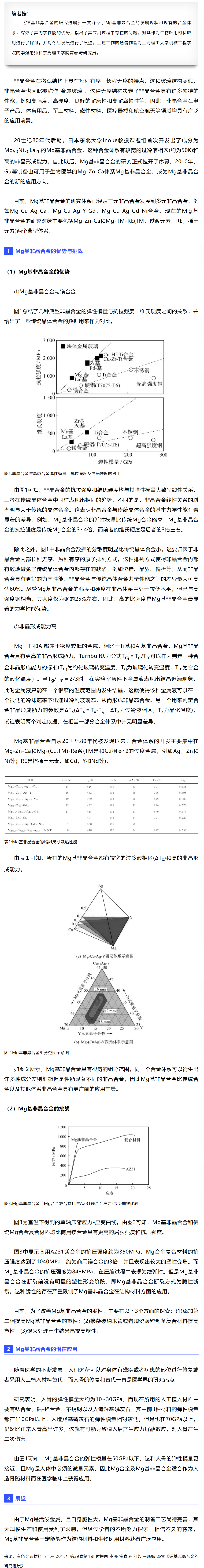 上海理工:镁基非晶合金的研究进展