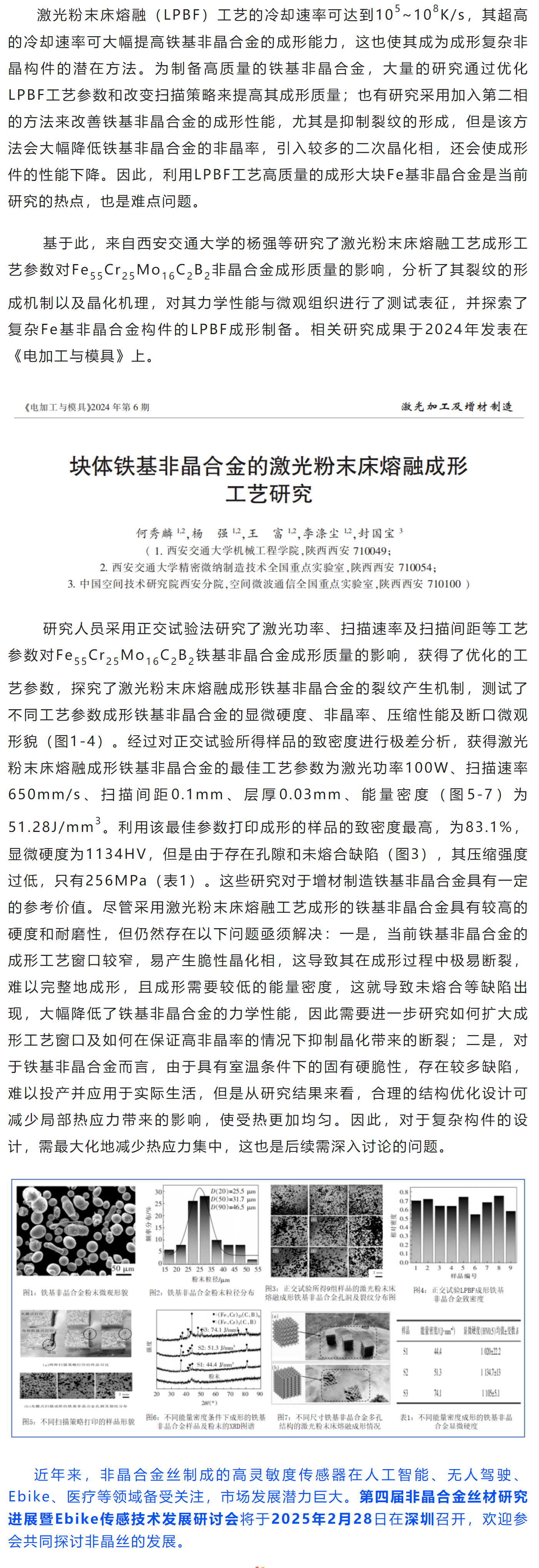 块体铁基非晶合金的激光粉末床熔融成形工艺研究