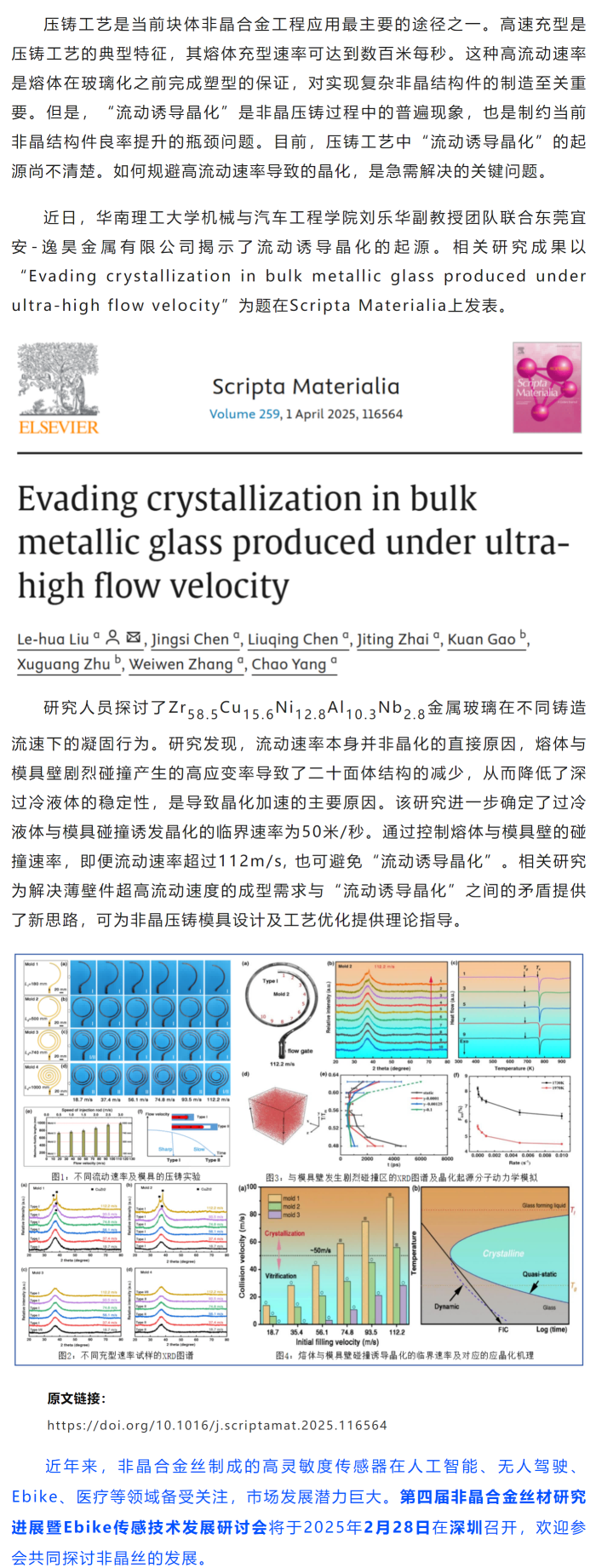《Scripta Materialia》华南理工大学刘乐华等工作:规避超高流动速率下的非晶压铸晶化