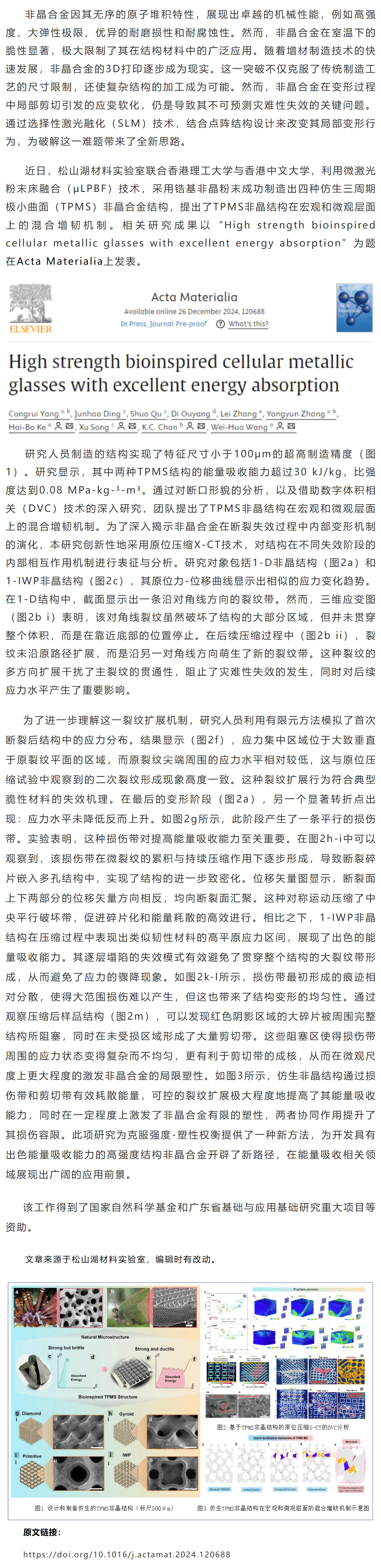 《Acta Materialia》松山湖材料实验室等:增材制造高强韧金属玻璃仿生结构