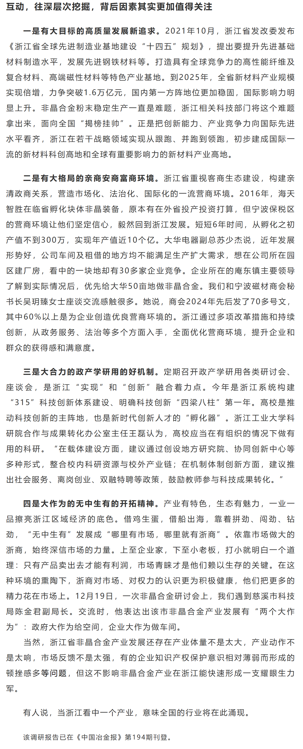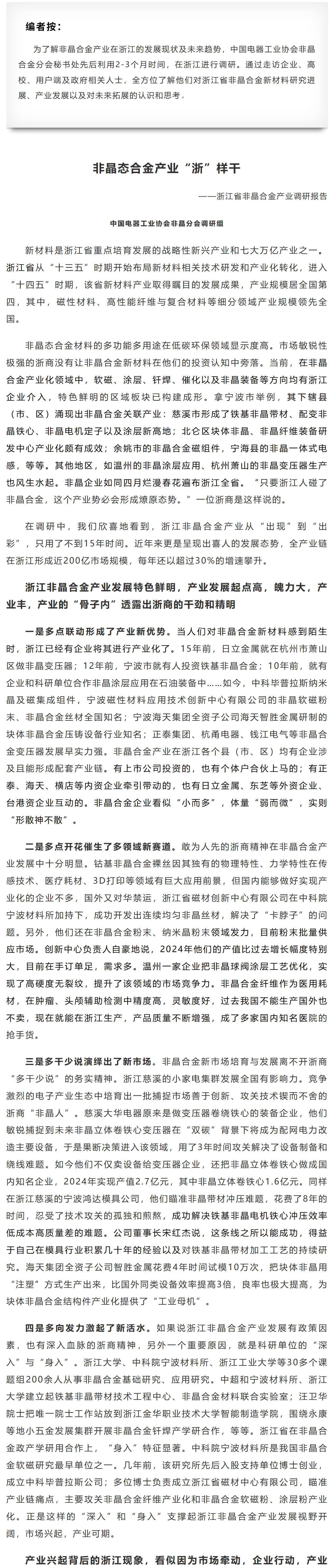 浙江省非晶合金产业发展调研报告