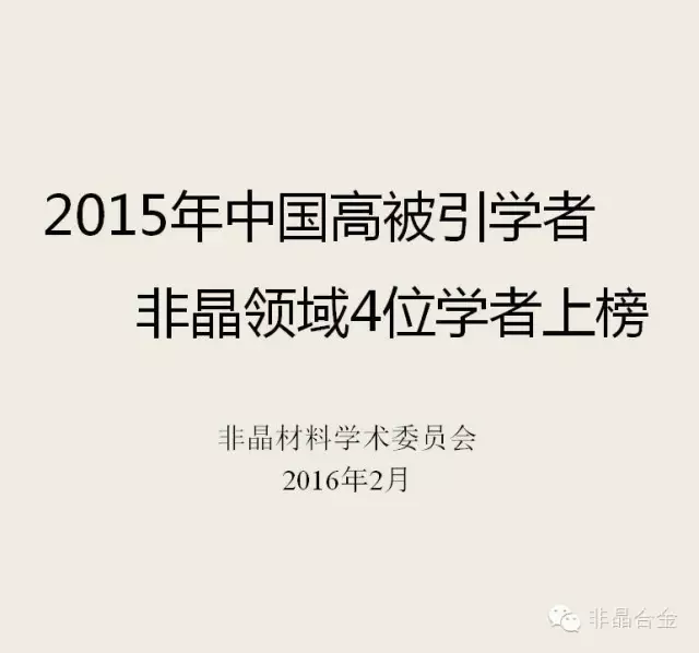 2015年中国高被引学者非晶领域4位学者上榜