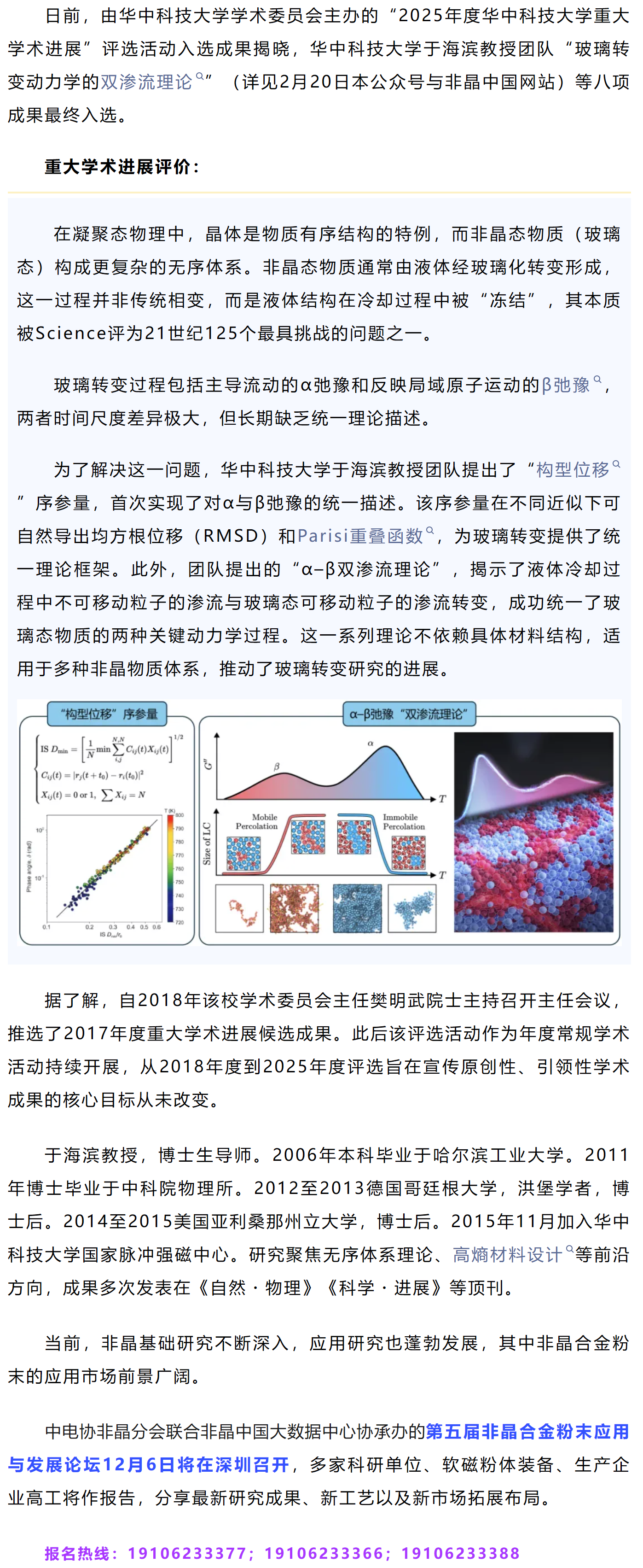 于海滨教授团队一非晶科研成果获华中科技大学2025年度重大学术进展