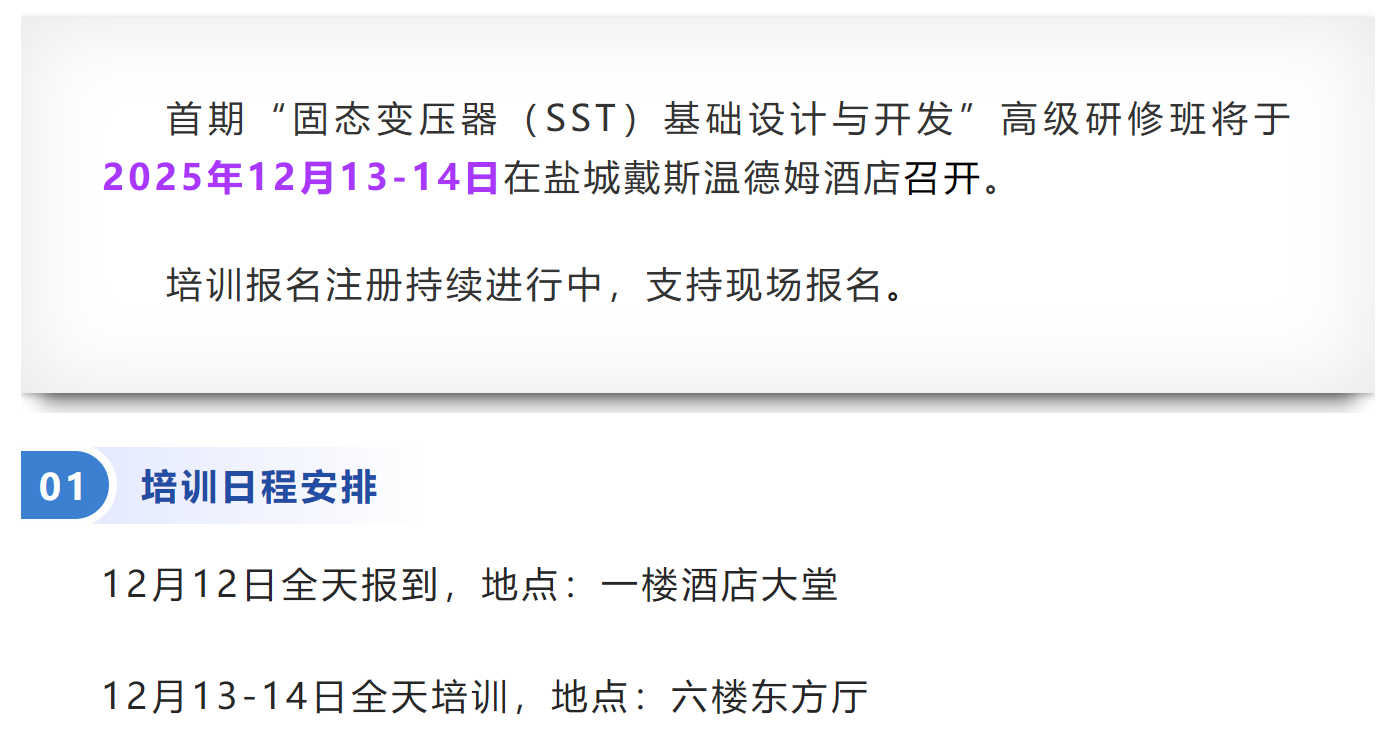 培训课表公布|首期“固态变压器(SST)基础设计与开发”高级研修班