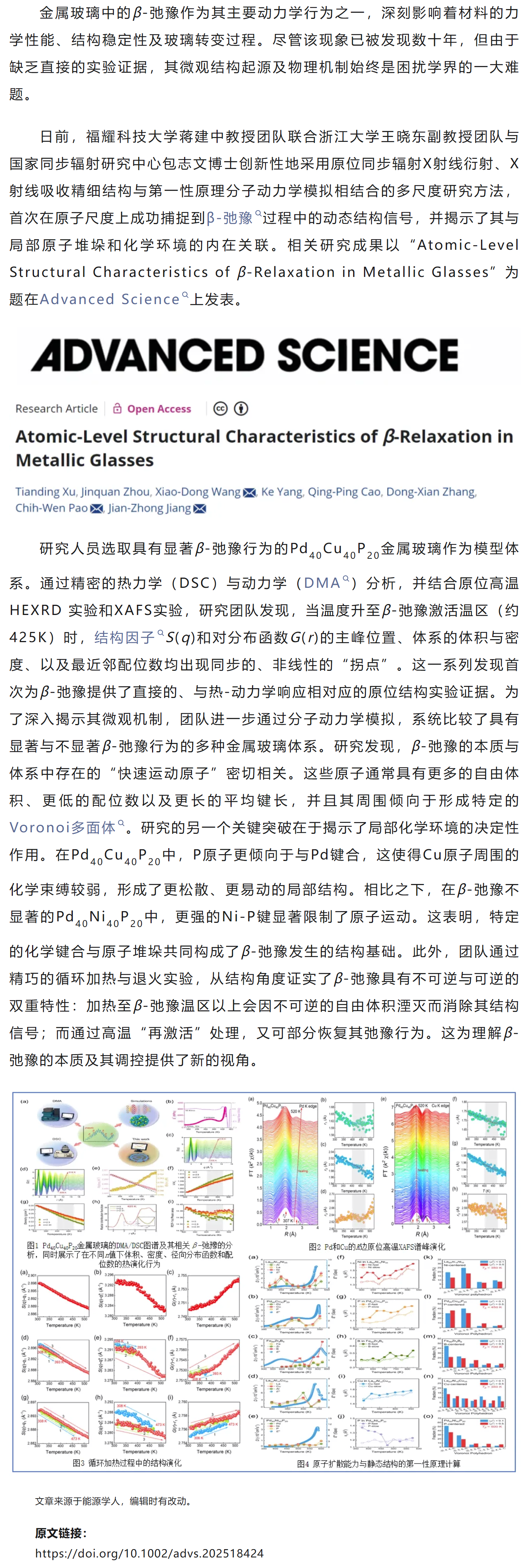 Adv. Sci|福耀科大蒋建中等工作:金属玻璃β-弛豫原子级结构特征