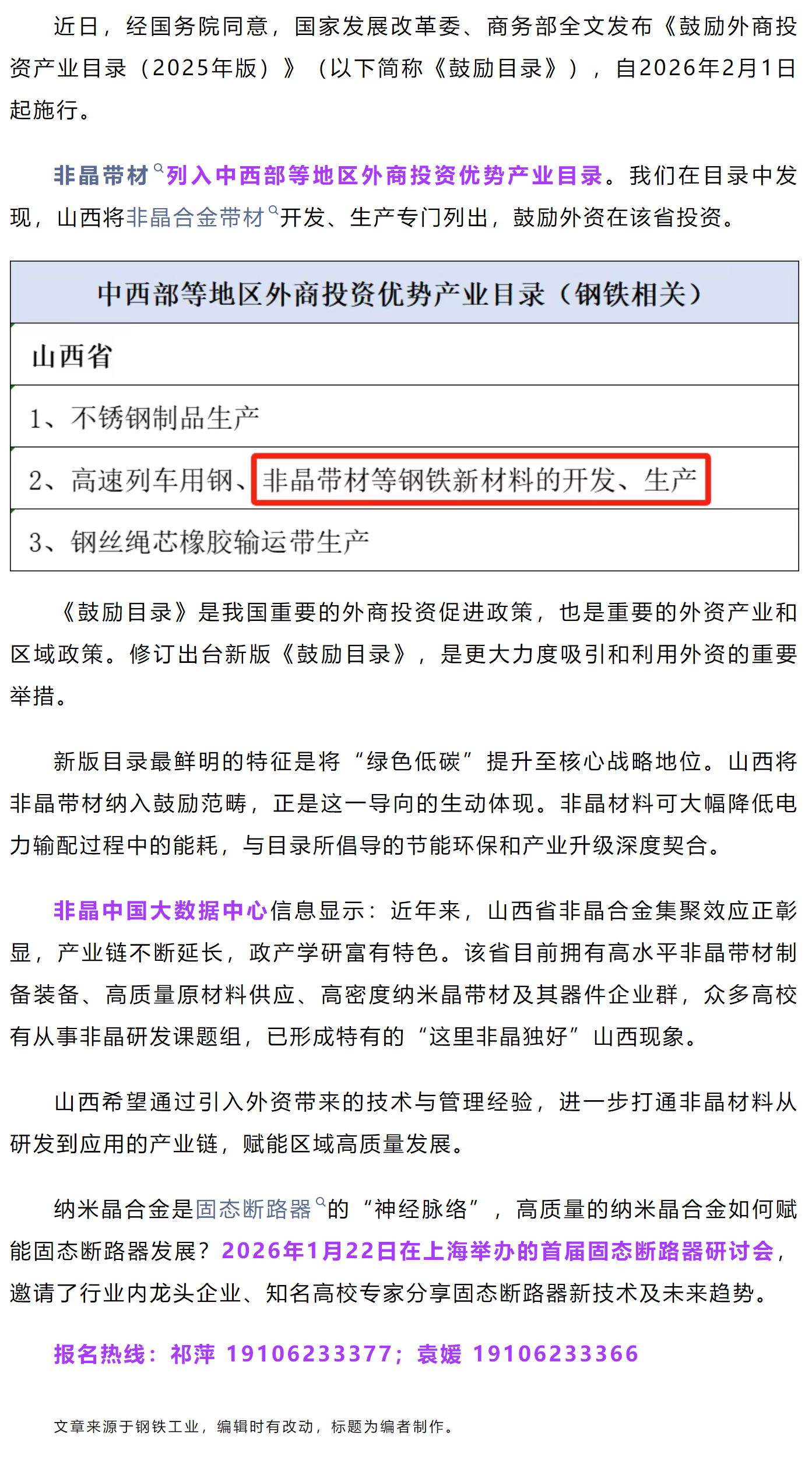 国务院同意鼓励外商投资目录 这个省欢迎外商投资非晶合金材料