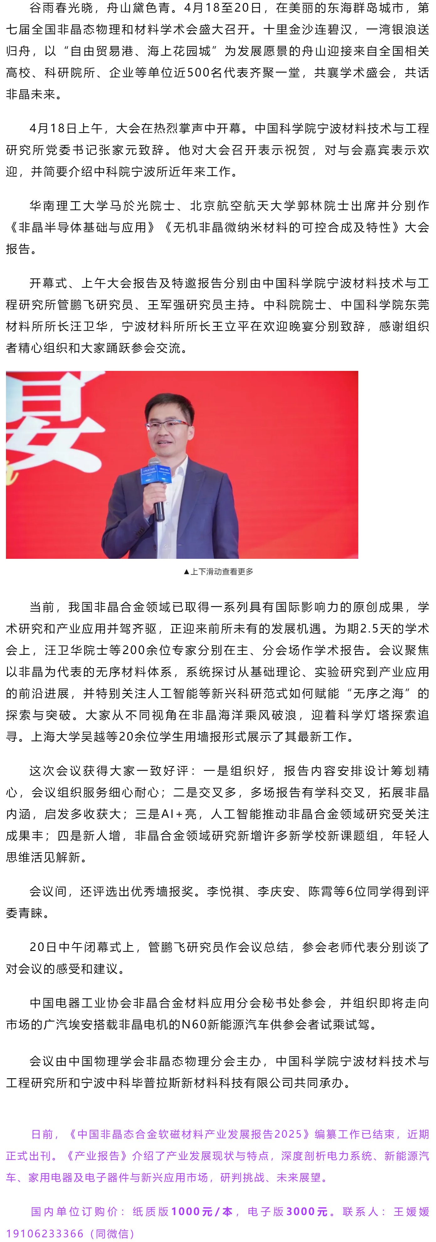 第七届全国非晶态物理和材料学术会议在舟山召开