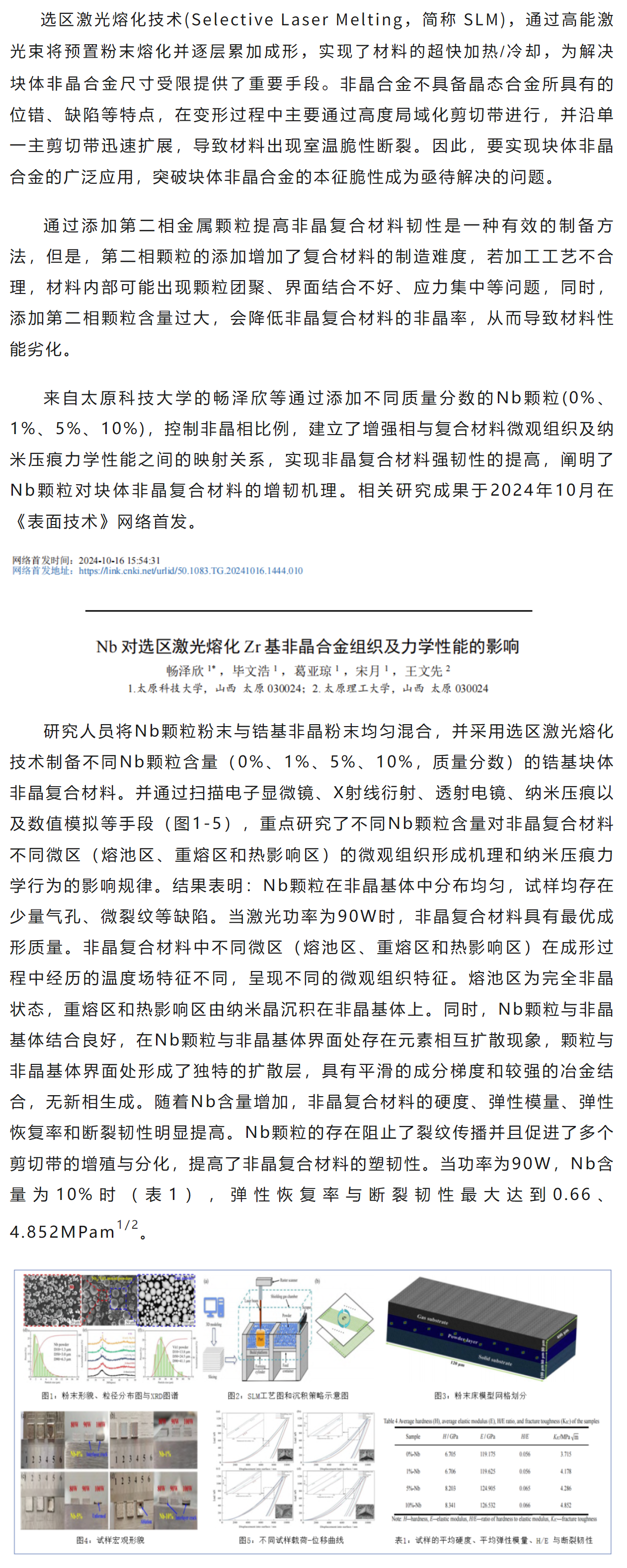 Nb对选区激光熔化Zr基非晶合金组织及力学性能的影响